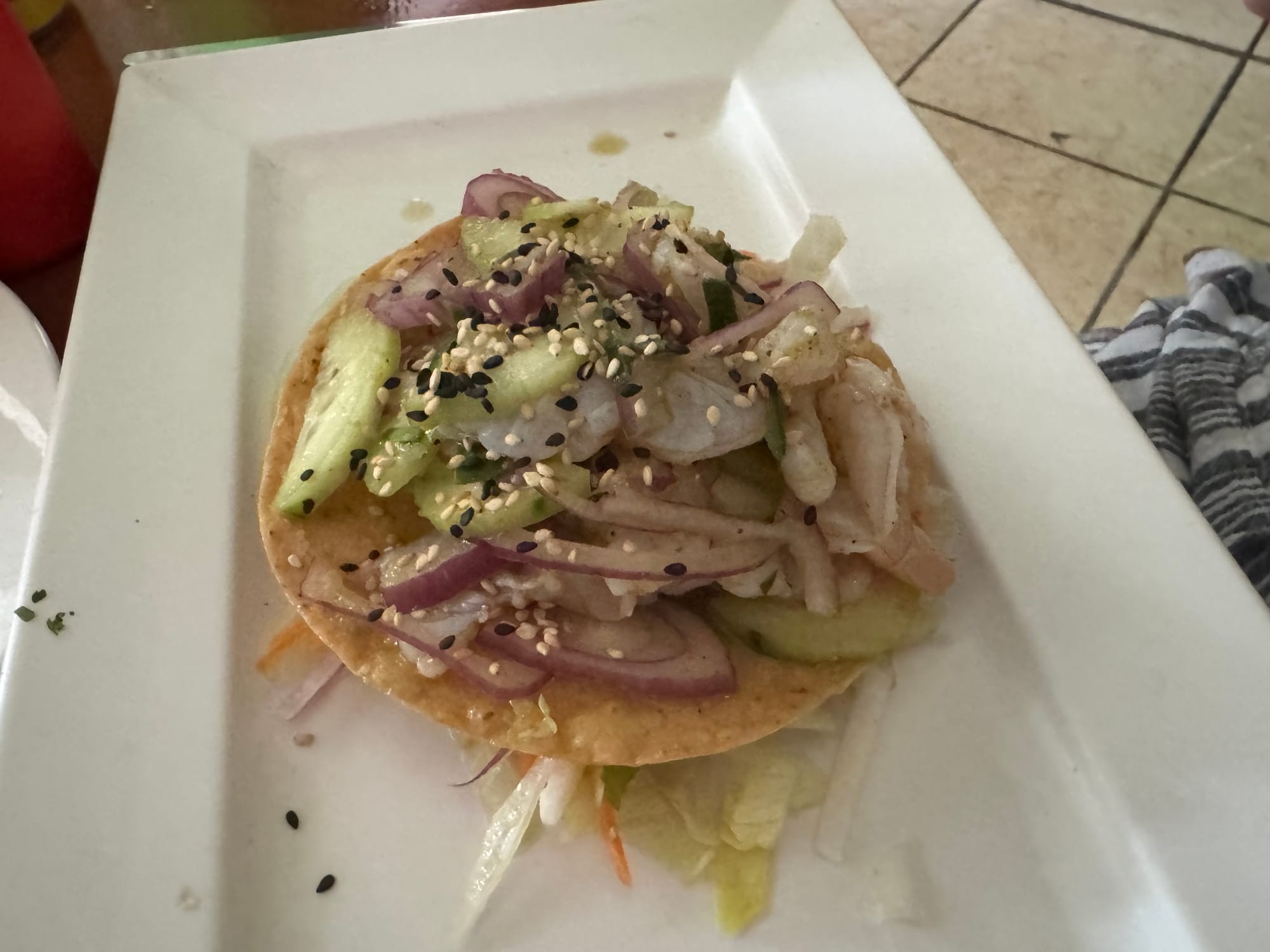 We went into the Pueblo across the bridge over the main highway, and walked around for a bit. We finally settles on a place called El Último Maya. We had a drink there before, but had never eaten. It seemed lively, with people sitting outside, so we decided to give it a try. We were impressed!