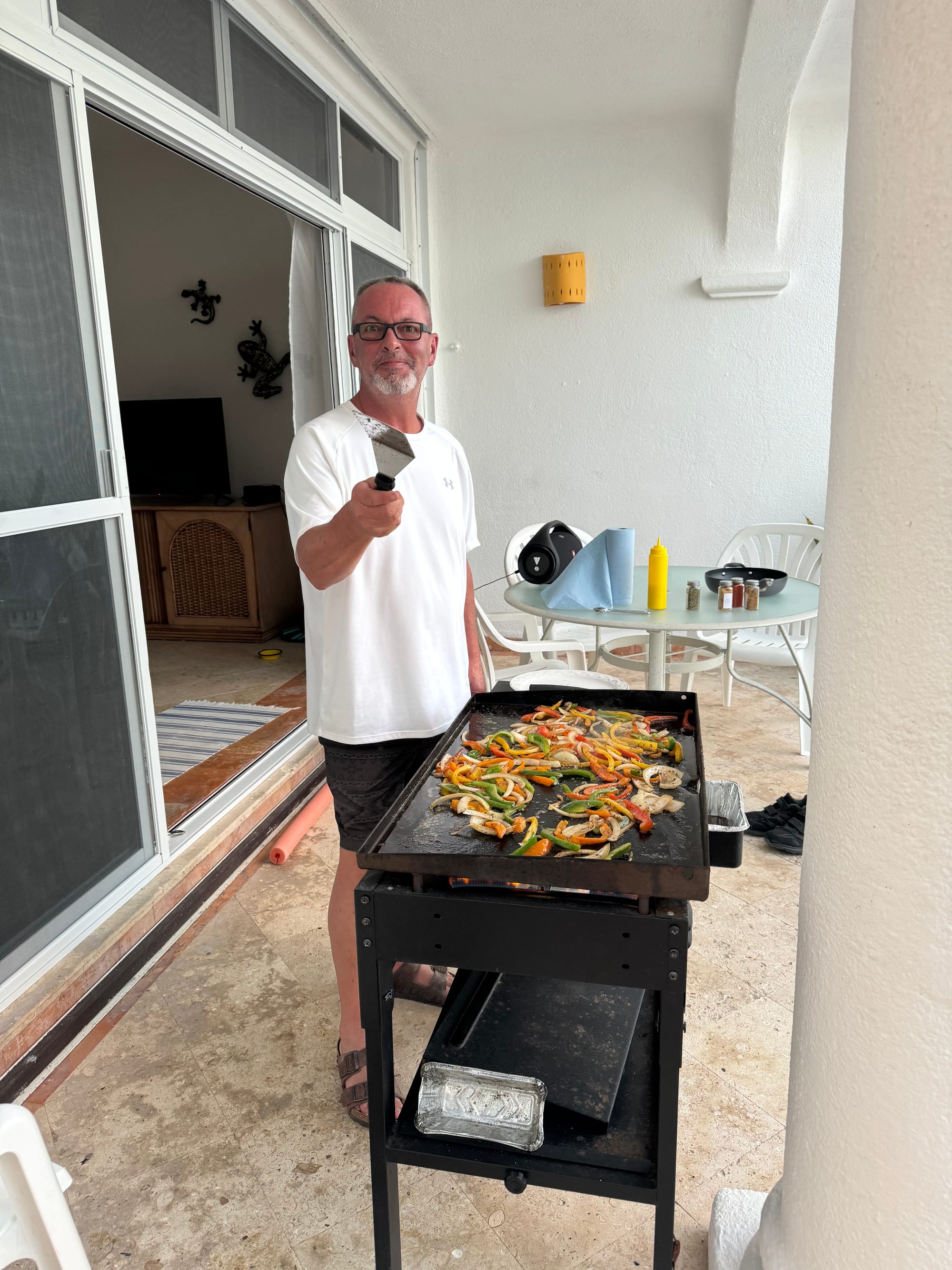 At 3pm, we went to the store to buy beer and snacks, as the store closed at 5pm. When we returned our neighbors were cooking their dinner on a flat top grill!